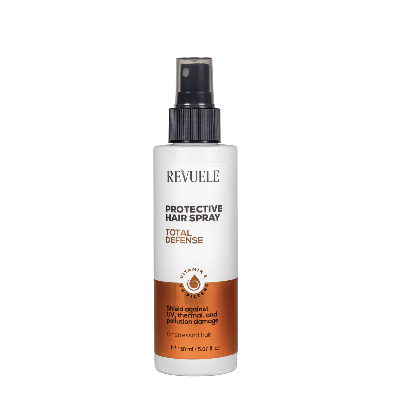 Захисний спрей для волосся Revuele Total Defense "Тотальний захист" створений для комплексного догляду та щоденного захисту від ультрафіолету, забруднення повітря, теплового стайлінгу та сухості. Легка незмивна формула з вітаміном E робить волосся м’яким, блискучим і слухняним, не обтяжуючи його та не залишаючи липкості.